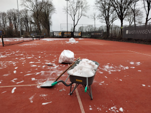 Dankzij de regen én de inzet van Anton en Piet zijn de smashcourtbanen vanaf morgen (dinsdag 13 januari) weer bespeelbaar. Er kan dus na de sneeuwpret weer op zes banen worden getennist en gelest.